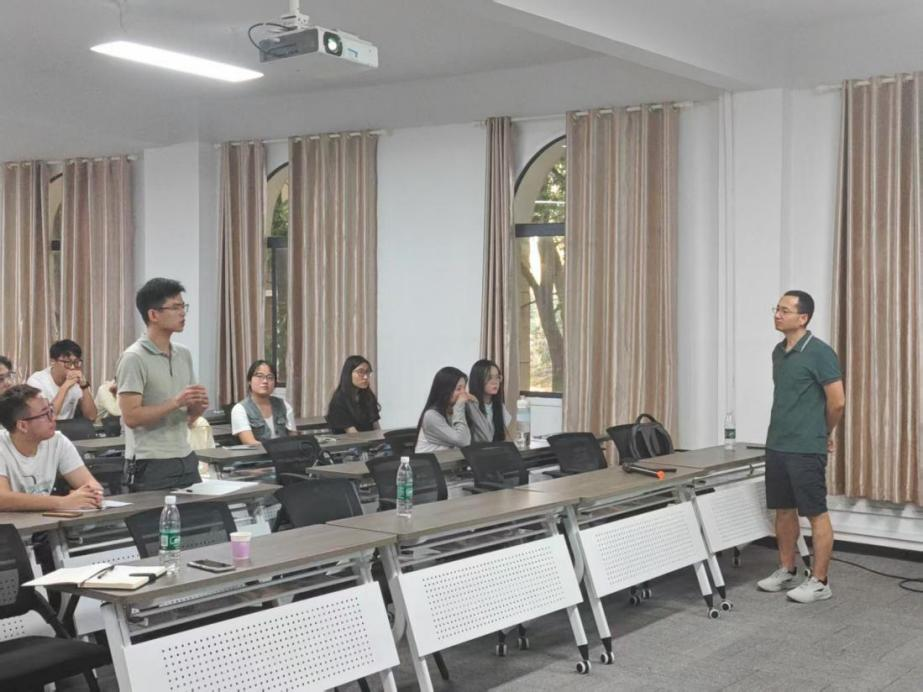 报告结束后,郭志光教授与现场师生开启了一场热烈且深度的互动交流。针对大家提出的“仿生超润湿表面的耐磨性能优化”等专业疑问,结合自身20余年的研究积累,从材料微纳结构设计、实验表征技术选择到实际应用场景适配,进行了细致入微的解答。同时还讲解了如何将科研工作与生活相联系,激发同学们投身化工材料研发、努力实现科研目标的热情。