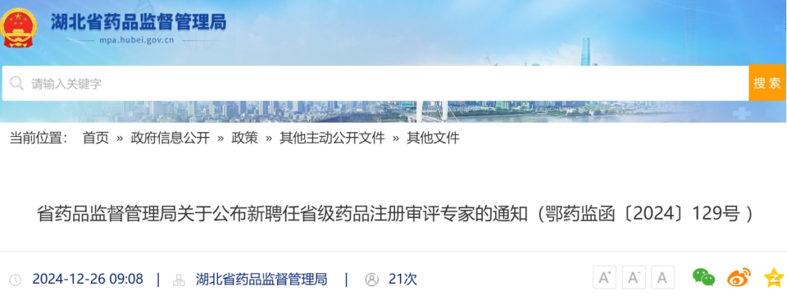 本网讯(通讯员 张双双)12月26日,湖北省药品监督管理局发布了“省药品监督管理局关于公布新聘任省级药品注册审评专家的通知(鄂药监函〔2024〕129号 )”,我校足彩比分