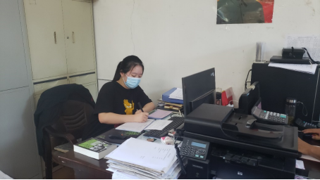图7 实践团成员李睿媛进行疫情期间下沉志愿者信息整理工作