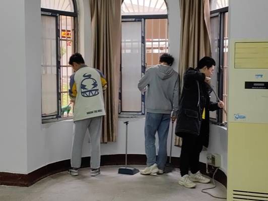 开展入党积极分子校园清扫素质教育劳动,对西北区办公楼展开清扫。