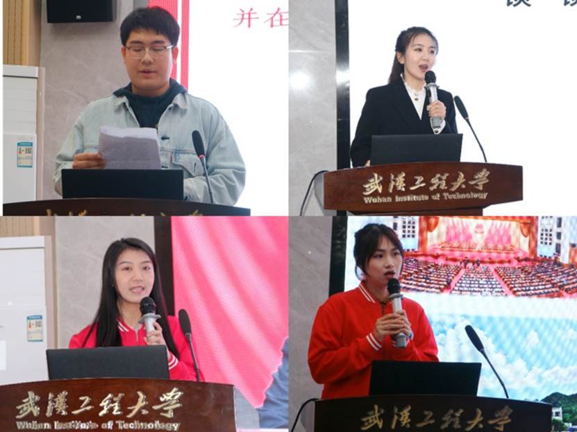 2021年级中外二班任雨晨同学以《追忆许志伟英雄 传承许志伟精神》为题,为大家再现了许志伟学长的英雄事迹,并号召广大党员同学铭记先辈精神,发挥党员先锋模范作用,以实际行动不断弘扬与践行许志伟志愿精神。马克思主义学院2022级研究生刘蜜为大家带来《实现建军一百年奋斗目标 开创国防和军队现代化新局面》主题宣讲,她从解读建军一百年奋斗目标开始,深刻阐述了国防和军队现代化“新三步走”战略,重点讲解了建军一百年奋斗目标的内涵。接着从三个方面阐述了进一步提高国防和军队现代化的必要性。最后结合视频的形式展示了新时代以来十年强军的成果。马克思主义学院2022级研究生王梦凡则以《增进民生福祉,提高人民生活品质——湖北通城县村民的致富良方》为题,从“增进民生福祉的新部署”“党和国家重视民生的理论依据”“湖北通城县村民的致富良方”三个方面展开。聚焦湖北省通城县的致富之路,为同学们生动诠释了民生领域我国在世界减贫史上创造的伟大奇迹。