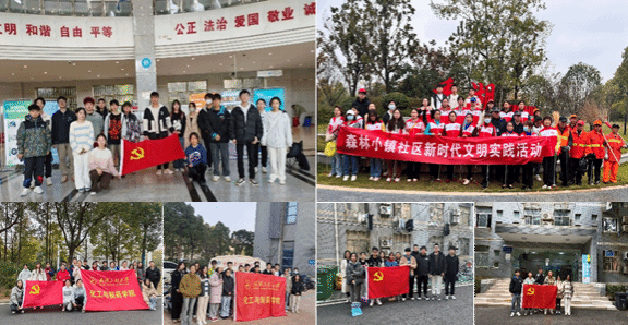 分党校以小组为单位围绕 “我为群众办实事” 的主题陆续开展实践锻炼活动,包括进流芳校区图书馆清理书架与归档书籍、进森林小镇社区清扫园区以及整理学院责任区电动车、清扫校园落叶等。