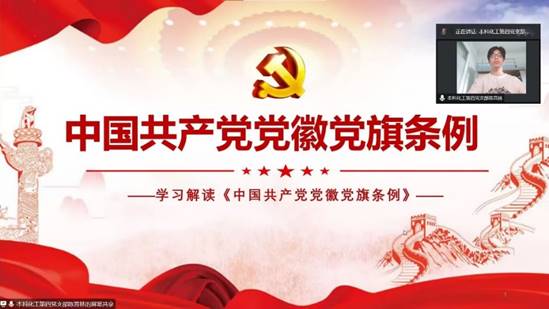 主题微党课《中国共产党党徽党旗条例》学习由本科第四党支部陈晋林同学领学,逐条解读了《条例》的主要内容。通过学习,大家对《条例》有了更加全面的认识和理解。《中国共产党党徽党旗条例》是我们党历史上第一部关于党徽党旗的基础主干法规,是党徽党旗制作、使用、管理的基本遵循。陈晋林同学表示,中国共产党的党徽党旗是中国共产党的象征和标志,党的各级组织和每一个党员都要维护党徽党旗的尊严。同时发出号召,作为新时代的大学生党员,要严格按照规定使用党徽党旗,带头维护党徽党旗的尊严。