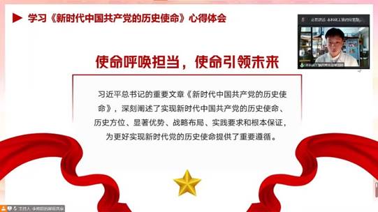 在学习第19期《求是》杂志发表的中共中央总书记、国家主席、中央军委主席习近平的重要文章《新时代中国共产党的历史使命》环节中,本科化工第四支部的樊羽林同学表示作为大学生党员,作为未来国家发展的主力军,要承担起时代所赋予的历史使命。首先,要努力学习科学文化专业知识,丰富自己的头脑,夯实基础,锻炼自己各方面的素质,积极迎接科技和知识经济的挑战,用所学的知识服务于人民的使命;其次,要敢于自我批评,挑战自我,脚踏实地,更要能够实事求是的工作和学习,同时要积极培养自己的创新意识和创新能力,突破自我,勇于担当的使命,用发散思维顺应时代发展。把自己的前途命运和国家民族的前途命运密切联系在一起,以家国为己任,在中华大地上书写绚丽篇章。