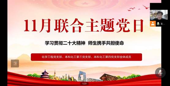化学工程教师党支部、本科化工第三、第四党支部联合开展线上主题党日活动,师生党员共学共进,联学联建,在学校抗击疫情的特殊时期密切联系师生,凝聚党员力量。