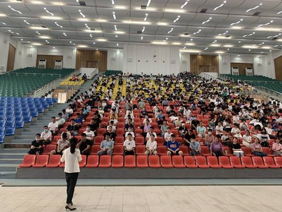 学院邀请武汉信息传播职业技术学院心理健康教育中心副主任严婷为新生作“大学,我来了——大学生活的适应”心理健康宣讲。她通过与新生互动以及新生现场测评向新生讲述大学生适应新生活的心理状态转变,并且教授新生适应新环境的方法,提高新生适应新环境能力。
