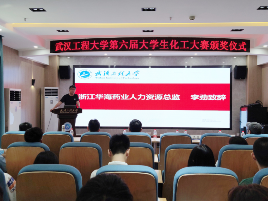 学生具有的优秀品格。武汉工程大学化学工程与技术是湖北省重点学科,学好化工专业知识,提升专业能力,不断创新是同学们未来求职道路上的重要保障。在浙江华海药业有很多学校的校友,他希望同学们要向优秀校友学习,继续发扬、传承工大精神。他热忱地邀请同学们到浙江华海药业实地参观学习。