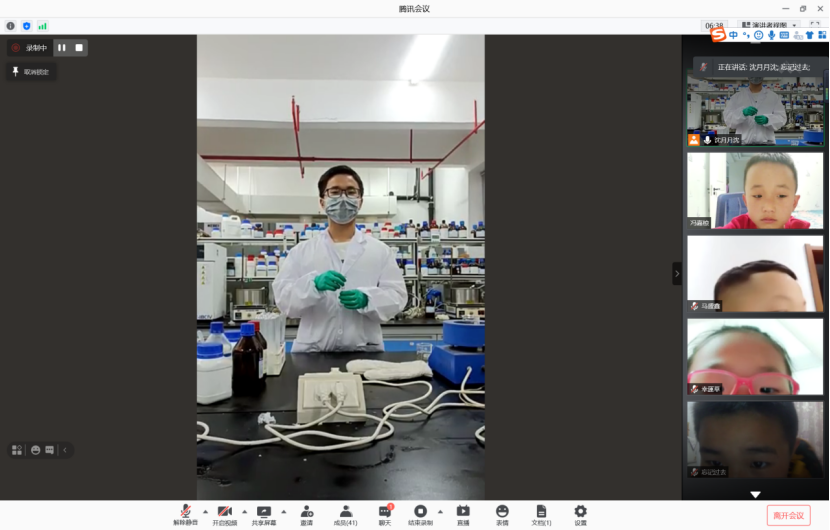本网讯(通讯员 沈霁月)5月8日晚,足彩比分 “许愿计划”实践团携手盐池县团委开展了一次别开生面的线上趣味实验活动,学生党员志愿者们结合化工、制药专业特色,成立线上宣讲团,为来自盐池县近50名小朋友讲授了一次精心准备的直播课。