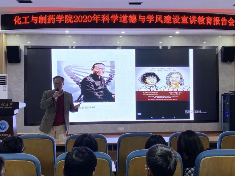 在大化工楼610报告厅举办科学道德和学风建设宣讲教育专题报告会,学院副院长龙思会作专题报告。导师代表、研究生辅导员及100余名研究生参会。