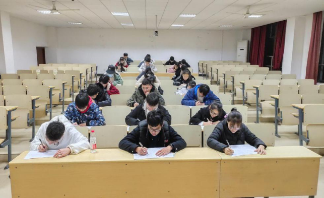 在教学楼举行《学生手册》考试。此次考试由各班副班主任监考,2020级全体新生参加。