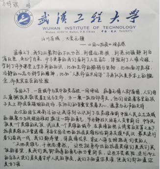 所思所感所悟。惊心动魄的抗疫大战和艰苦卓绝的历史大考,见证了中华民族的精神伟力。此次“同心抗疫,爱国力行”主题系列活动让化药学子感受到了伟大的中国速度、中国力量和中国精神。每个学生都有所触动,我们一起来看看大家的所思所感吧。