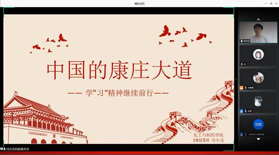 在活力团支部评选环节中,各参赛班级团支部代表们从支部建设、支部特色团日活动、支部荣誉以及支部成员风貌进行讲解,并用视频、情景剧、朗诵等方式进行示风采展示,充分展现化药学子理论学“习”的实际成效、团支部建设的亮点和风采。