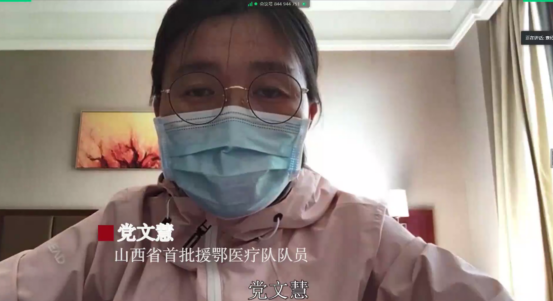 会议远程连线了山西省首批援卾医疗队队员党文慧,她表示开始确实会有担心,但在看到当地的情况后便无暇顾及自身的安危。“看到患者信任的眼神,哪里还会记得各种不适应,内心只有一个想法,竭尽全力去医治每一位患者”党文慧这样说道。