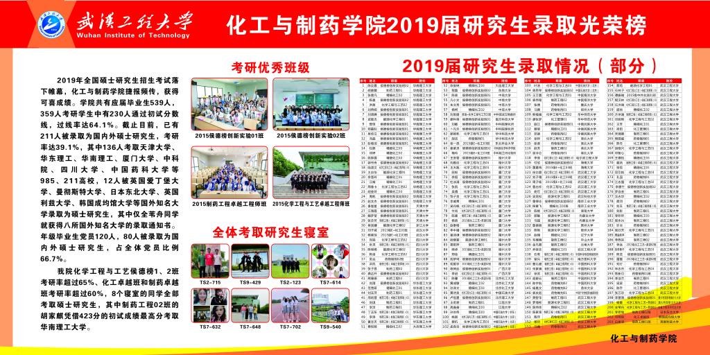 此次研究生考试中,高分考生频现,多人考分高达400分以上,其中制药工程02班的胡家麒凭借423分的初试成绩第一名考取华南理工大学。在考取国外硕士研究生方面,仅全苇舟同学一人就获得英国爱丁堡大学等八所国外知名大学的录取通知书。