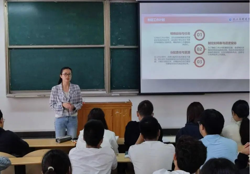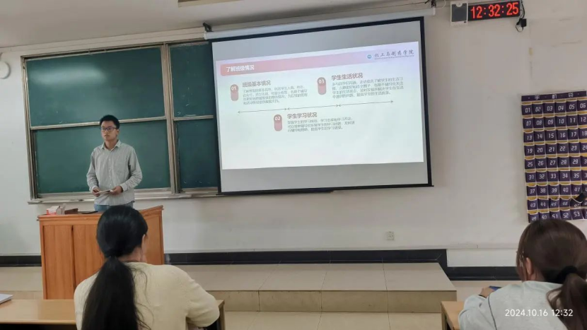 为了更好推进学院新生班级建设工作,帮助班委更好的了解工作内容,建立好“校院班”三级之间的沟通桥梁,畅通反馈渠道,为新学期的班级建设与管理奠定坚实基础,培养一批有责任、有担当、有能力的班委队伍,2024级本科班委培训会由学院辅导员翟森稳、张锦分别从“班委职责”“沟通技巧”“班级建设”“时间管理”“应对压力”“工作方式”等方面展开培训。