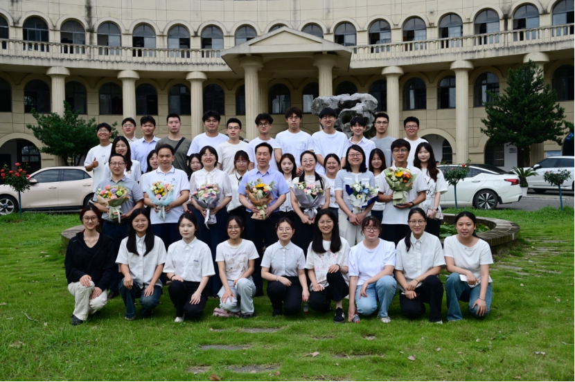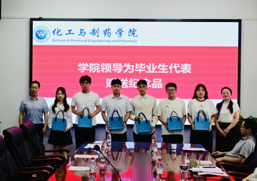学院领导为毕业生代表赠送纪念品表达祝福,愿每一位同学都能珍藏这份专属的化药记忆。毕业生代表则手捧鲜花,向与会教师深深鞠躬,感恩师长培育之恩。 全体参会人员合影留念,定格下这一温暖的瞬间。