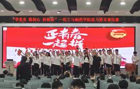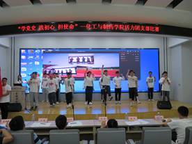 活力团支部比赛由支部学“习”成果介绍和支部风采展示两部分组成,全面考察团支部成员对团务工作的了解程度,全方位展示班级团支部的青春风采和巩固党史学习教育的成果。各支部汇报人基于专业特色与自身优势,以PPT的形式从支部组织建设、活动开展概况、支部成员风采和创新班团活动等方面进行介绍,对本支部开展的日常团务工作、主题团日团课、志愿服务活动以及特色亮点工作等进行重点汇报,打造独特支部品牌,营造优良支部风气,充分展现了化药学子理论学“习”的实际成效,进一步加强了团支部的凝聚力。在支部风采展示环节中,各支部围绕“党史教育学习”并结合班级专项优势,通过演讲朗诵、演唱舞蹈、情景剧等丰富多彩的形式诠释支部建设的特色与亮点,表达对党和祖国的感恩之心和热爱之情,展现了新时代青年爱党、爱国、爱社会主义,勇于拼搏、敢于担当、勇立潮头的良好精神面貌。