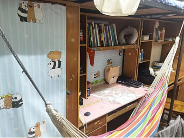 宣传语:这是一个可爱而又温馨的寝室,舍员和睦相处,开开心心,一起吃饭,一起学习,一起出去玩,上课帮忙占座位,放学帮忙带饭,没有什么事是一句爸爸解决不了的,如果有那就两句。寝室干净整洁,装修风格统一,学习氛围浓厚,舍员平均综测成绩达到82分以上,是一个积极向上的宿舍,计划未来一起加油考研!