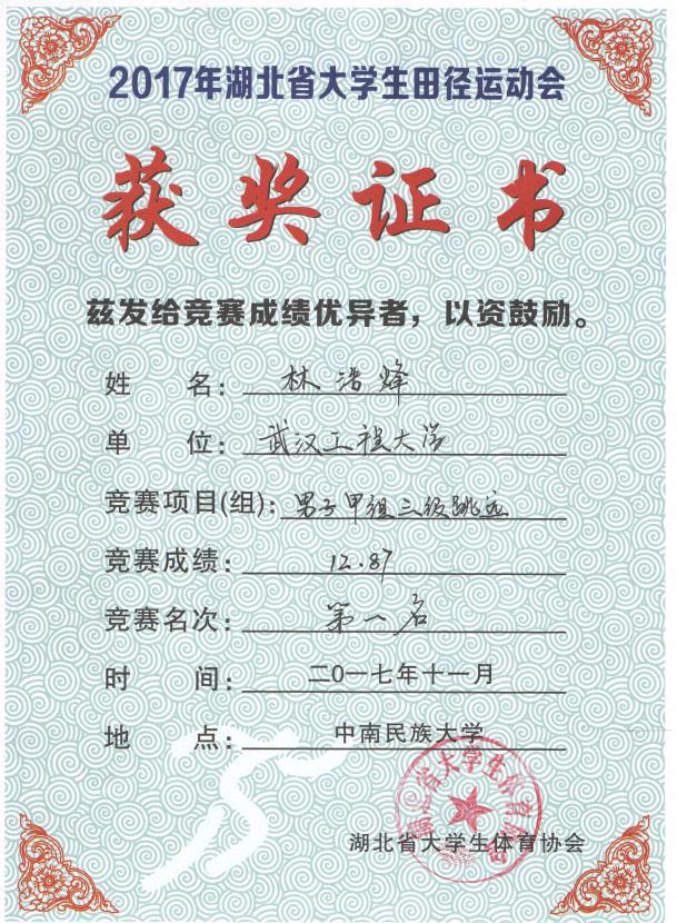 足彩比分 学子在2017年湖北省大学生田径运动会荣获两枚金牌