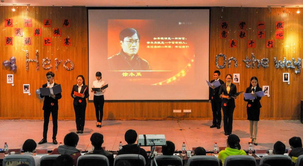 在图书馆二楼多功能报告厅举办了武汉工程大学第十三届“英雄颂”朗诵比赛决赛。
