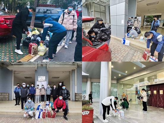 受到疫情影响,一些同学被封控在寝室,大家的考研复习资料还放在图书馆、自习室中,学院19级辅导员与学生志愿者化身“快递派送员”冲锋一线,19级的同学们互相帮助,齐心协力将复习资料整理、打包,再交由辅导员搬运到宿舍楼下进行消杀,有序分发送到各个考研学子手中。大家团结一致、众志成城,进一步为考研学子坚定信心,增添考研动力。