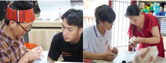 随后,妈妈制造工坊的绣娘周艳文老师为实践队员就绣品制作技艺、图示纹样布局及配色选择运用等方面进行讲解,并指导大家学习平绣、回针绣两种绣法。成员们通过动手实践参与苗绣的一针一线技术,探索针尖的奥秘,感受苗绣文化魅力。