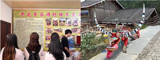 实践团一行走进全国脱贫攻坚先进集体、全国先进党组织老屯乡长滩村,驻村第一书记周兴文带领同学们参观苗族特色吊脚楼、蜡染馆、加工作坊及种植庭院等特色建筑。