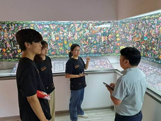 “这是一个很大的苗绣,它向我们讲述了苗族的神话故事、习俗和节日。透过这幅苗绣,我对苗族的认识更加深刻,我也想了解更多相关内容。同时,我也敬佩这些学习继承,坚持苗绣的手艺人。因为他们的坚守,我们才能看到这些优秀富有魅力的作品。”实践团成员石晰荧说到。