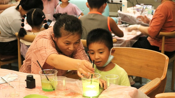 8月9日,实践团充分发挥专业优势,精心设计并开展了一堂生动的“小小科学家”—亲子化学小课堂。本次课堂邀请青年家长们带领孩子们共同体验化学的奇妙。