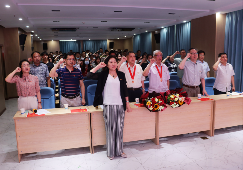在学院党委书记王雪梅的领誓下,新党员代表面向党旗庄严入党宣誓,与会全体老党员重温入党誓词。