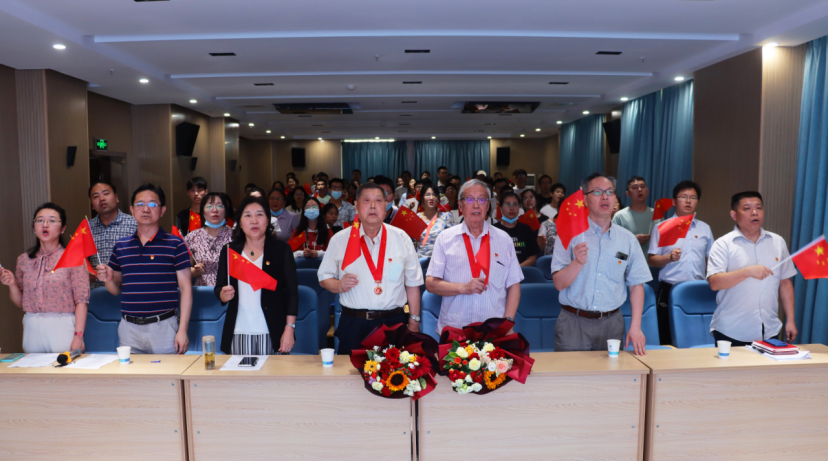 本网讯(通讯员 沈霁月)7月1日上午,足彩比分 在化工大楼610报告厅举行庆祝中国共产党“百年华诞百年荣光”主题教育活动,足彩比分 领导班子成员、教工党支部支部委员、学生党支部书记及本学期新发展党员代表参加,此次活动特邀“光荣在党50年”纪念章获得者代表、离退休处党员王广达和张汉生同志出席活动。活动由学院党委副书记周丹主持。