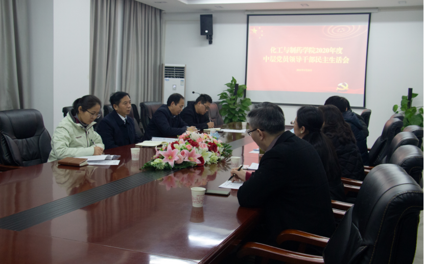 在大化工楼605会议室召开学院2020年度中层党员领导干部民主生活会。校党委书记程幼金、党政办公室主任马小龙、党委组织部副部长左辉、党政办王金领老师到会指导,会议由学院党委书记王雪梅主持,领导班子全体成员参加会议。