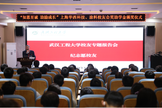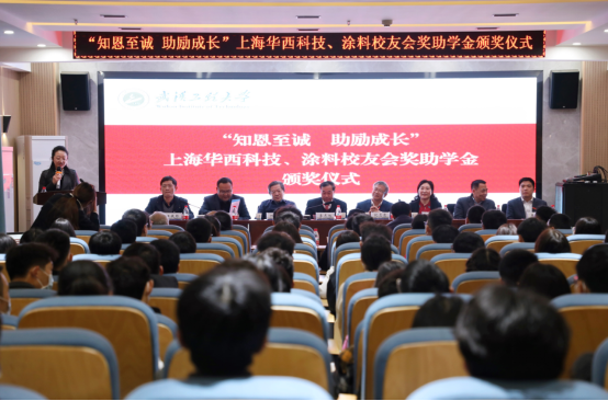 本网讯(通讯员 汤曦)3月20日下午,武汉工程大学上海华西科技、涂料校友会奖助学金颁发仪式在流芳校区化工大楼610报告厅举行。校党委副书记李志旭,校友代表彭昌军、纪志愿、何明益、尚勇全、王崇武、胡晓光、陶醉,党委学生工作部、校友工作处、足彩比分