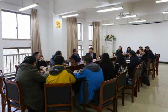 班子成员及制药工程、药物制剂专业教师代表进行了亲切会谈。陈院士富有深情的分享了他的学术成长历程,并坦言他的很多重大成果都是在武汉化工学院(现为武汉工程大学)工作时打下的坚实基础。陈院士告诫青年教师做科研一定不能盲从,要有定力,坐得起冷板凳;要树立远大目标,从应用中凝练关键的科学问题,并最终回到应用中去。陈院士多次提到这次回访母校的感觉就像回家一样亲切,在座谈中处处流露出对曾经工作过十年(1987-1997年)的母校深深的情感。与会人员无不对陈院士热爱科研的激情、坚持不懈的科研态度由衷敬佩,并备受鼓舞。