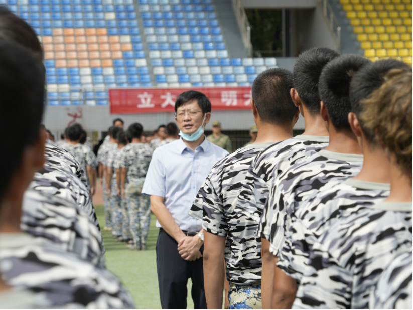 汪铁林向承训教官表示感谢,并嘱托同学们服从教官指挥和军训安排,严格遵守校园疫情防控要求,要通过军训进一步提高国防意识和政治觉悟,培养集体主义精神,激发爱国热情和家国情怀,为接下来的大学生活打下坚实的基础。
