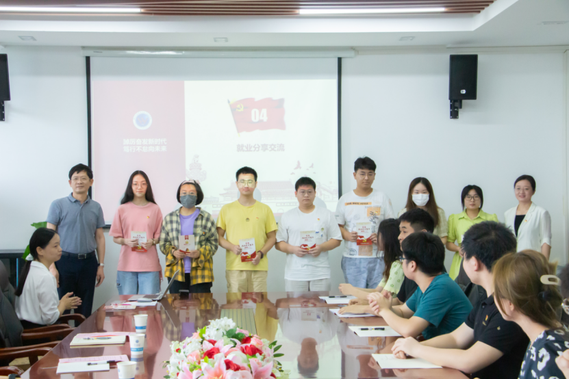 学院党委书记汪铁林、副书记周丹代表学院为班级党员同志代表赠送党员政治生日贺卡。