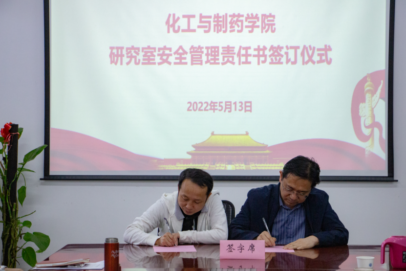 副院长闫志国与研究室责任人代表罗晓刚签订学院研究室安全管理责任书。