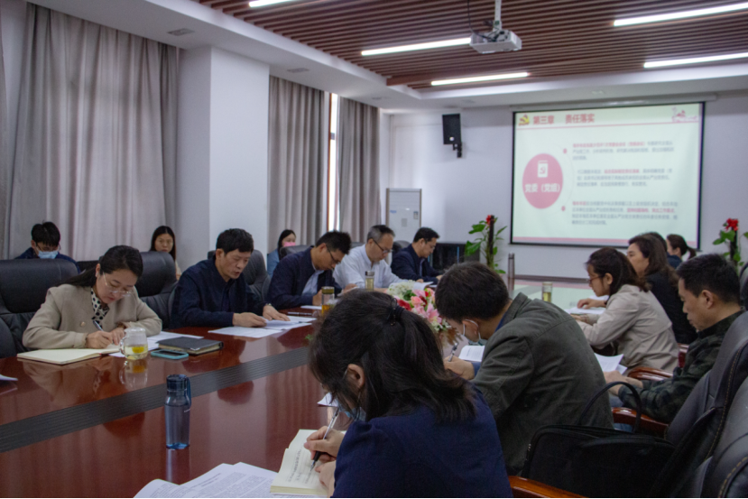 党委副书记周丹带领参会人员集中学习了十九届中央纪委六次全会、省纪委十一届六次全会和2022年教育系统全面从严治党工作视频会精神要点。