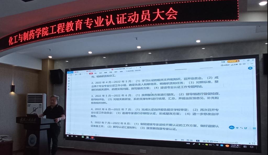 本网讯(通讯员郭琳、严静)4月11日下午,学院在大化工楼610报告厅召开化学工程与工艺专业及能源化学工程专业工程教育专业认证动员大会。学院党委书记汪铁林、院长易群、副书记周丹、副院长金放、学院教学秘书严静、郭琳,相关专业教研室主任、副主任及部分骨干教师等参加了会议,张珩和刘生鹏教授应邀作关于如何做好工程教育专业认证及其注意事项的报告,同时两位教授应邀担任足彩比分