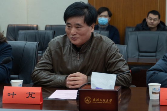 武汉工程大学正校级干部、学校基金会理事长叶芃致欢迎辞,叶芃代表学校向湖北振华化学股份有限公司长期以来对武汉工程大学的关心支持表示感谢,详细地介绍学校近年来人才培养、科学研究、师资队伍、社会服务等方面建设情况,并表示希望以此次捐赠为契机,创新合作模式,扩大合作范围,打造深层次校企合作平台,在人才培养、科研难题攻关上深入融合、相互促进,取得新的、更大的成绩,实现“双赢”。