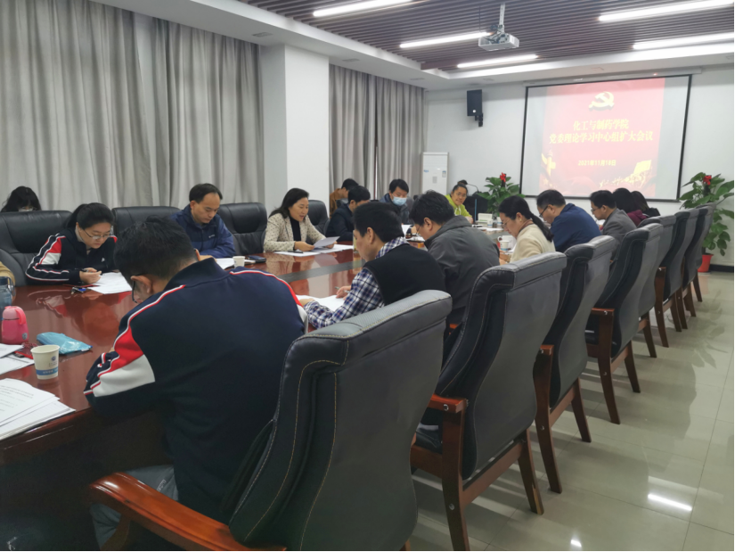 在化工大楼605会议室召开党委理论学习中心组(扩大)会议,专题学习党的十九届六中全会精神、习近平总书记在中央人才工作会议上的重要讲话等内容,学院领导班子成员、党支部书记、各系(中心)主任参加了学习活动。会议由学院党委书记王雪梅主持。