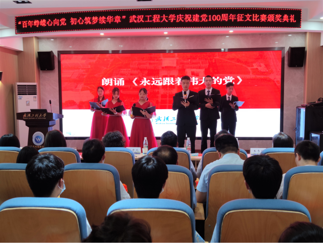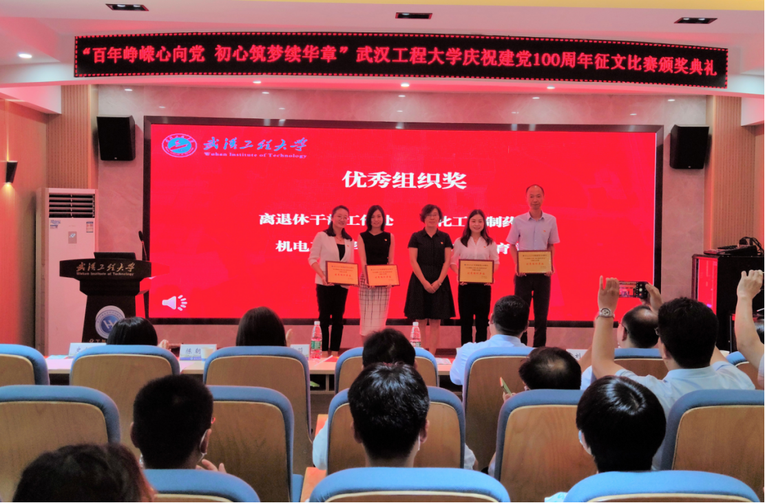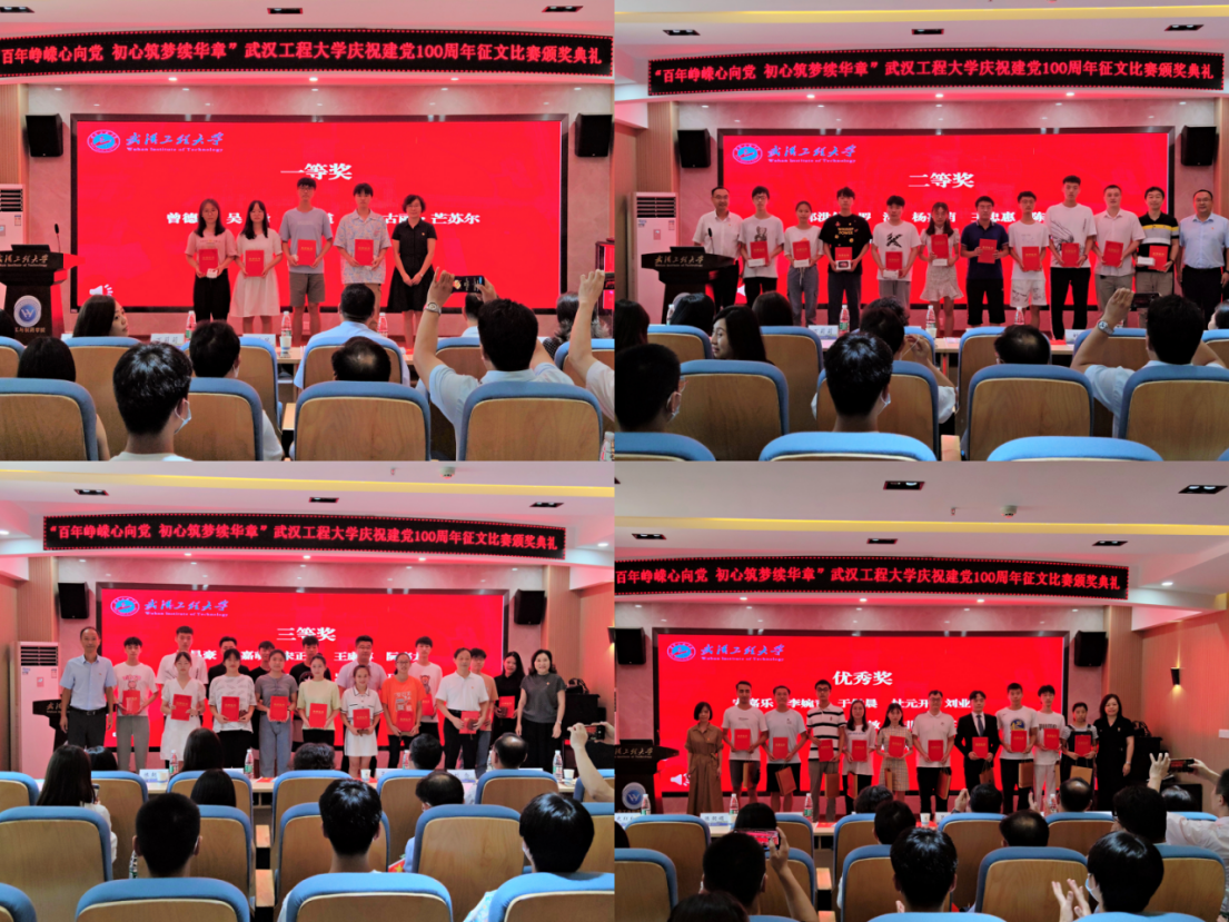 承办的“百年峥嵘心向党 初心筑梦续华章”武汉工程大学庆祝建党100周年主题征文比赛颁奖典礼在大化工楼610报告厅隆重举行。大赛优秀组织单位代表、获奖作者以及师生代表共百余人参加了颁奖典礼。