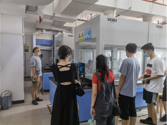 学院在每间实验室安排了专业老师负责讲解。每当学生进入一间实验室,负责老师都会对大家的到来表示热烈欢迎并耐心细致地讲解本实验室的操作项目、原理、过程及注意事项,解答同学们提出的各种问题。同学们则对实验室的一切充满了好奇,目不暇接,津津有味地听老师讲解。