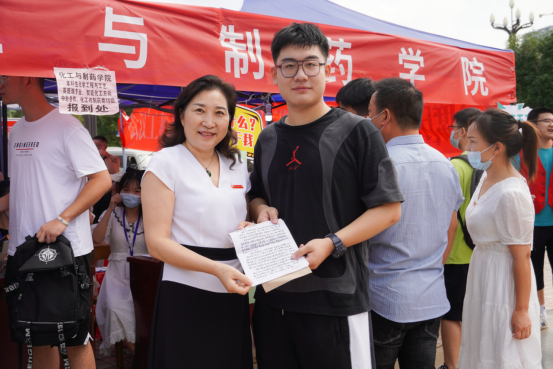 迎新第一天,学院就收到了新生陈恒君递交的入党申请书,学院党委书记王雪梅代表党组织接受了这名新生的入党申请书。新生何境霖独自一人前来报到,并积极投入到学院“志愿者”迎新服务。