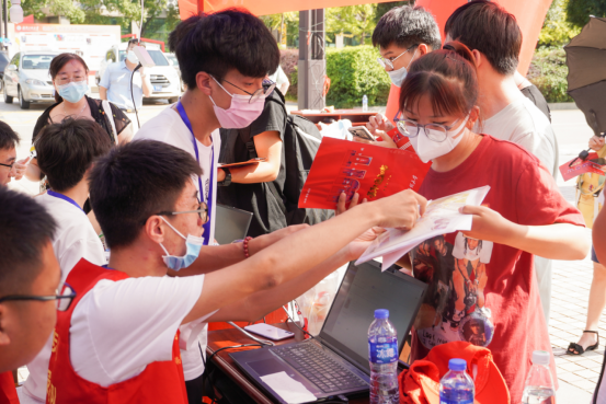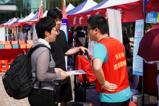 的迎新点就已经开始络绎不绝。伴随着气温的逐步上升,迎新点的火热程度也迅速攀升。迎新工作人员各司其职、通力合作、热情服务,迎新工作安全、有序、高效进行。
