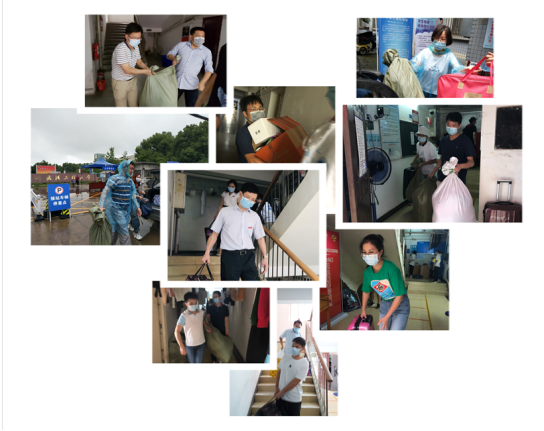 返校期间,为解决毕业生行李多、搬运难的实际问题,学院组建了毕业生行李搬运教师志愿者队伍,多次往返宿舍、校门口、托运点,帮助毕业生搬运行李。学院党政领导班子带领老师们一同前往宿舍看望日久未见的同学们,叮嘱他们加强自我防护,协助毕业生打包行李物品,护航毕业生离校工作的“最后一公里”。