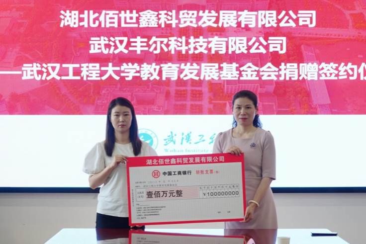 湖北佰世鑫科贸发展有限公司向学校捐赠100万元用于化工原理专业实验室建设。总经理陈璐表示,作为学校06级校友,很荣幸为化学工程与技术学科建设贡献力量。