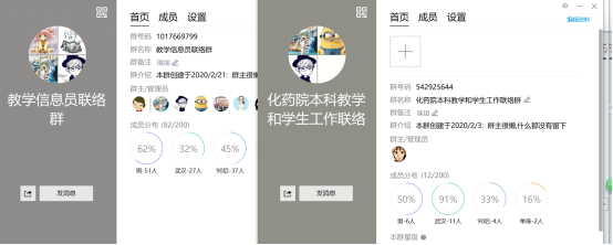 学院教学办、学工办建立教学信息联络工作群,及时了解老师教学、学生学习的基本情况,收取老师、学生反馈的问题并积极协调解决,保证教学运行正常。