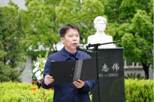 韩高军在讲话中介绍了许志伟的英勇事迹。他指出,学校高度重视许志伟精神的凝练和传承,组建了许志伟党员示范班、成立了许志伟党员先锋队、设置了许志伟班团支部、成立了许志伟志愿服务队,创立了许志伟微光爱心公益基金,组织开展了十八届许志伟杯“英雄颂”朗读大会,每年清明节组织开展主题祭扫活动,通过多种形式,引导广大学子在学思践悟中坚定理想信念,在奋发有为中践行初心使命,在实践服务中练就过硬本领,许志伟精神初心引领特色育人工程已经成为学校思想政治教育工作的一张亮丽品牌。