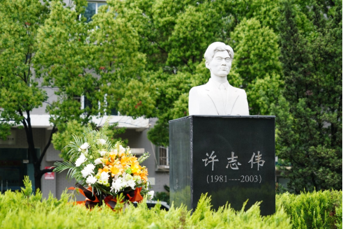 活动上,许志伟党员示范班、许志伟志愿服务队学生代表向英雄许志伟敬献花篮表达崇高敬意。全体师生代表面向许志伟雕像,肃穆伫立行默哀礼。